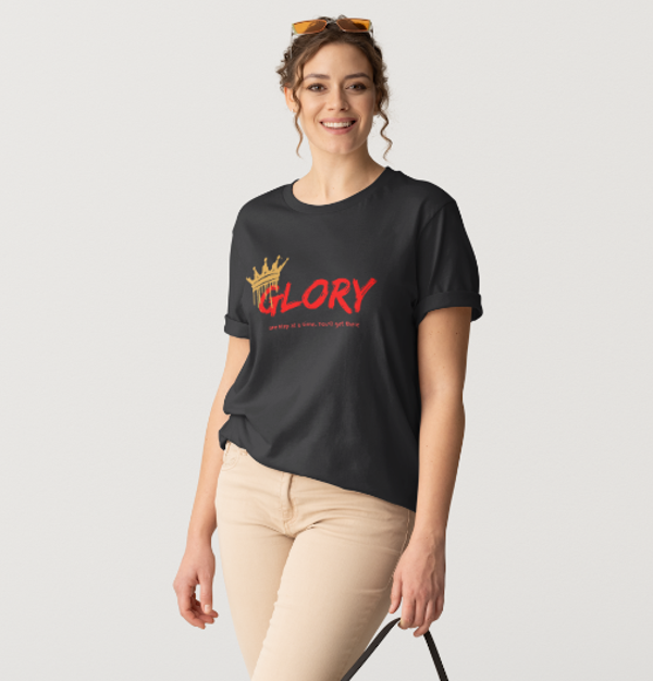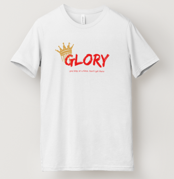 Step into confidence with our Glory Crown Tee. This premium cotton t-shirt features a bold, stylized "Glory" logo crowned with a sleek, minimalist crown—symbolizing power, purpose, and pride. Whether you're chasing your goals or making a statement, this shirt keeps you looking sharp and feeling unstoppable.